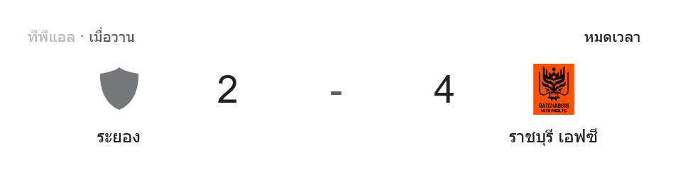 จาก : ผลบอลสด ไทยลีก ระหว่าง ระยอง เอฟซี 2-4 ราชบุรี เอฟซี วันนี้ 16/12/68 – บ้านกีฬา