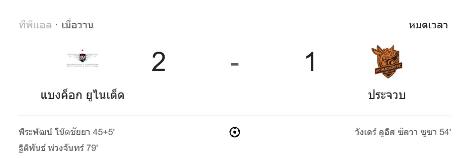 จากการแข่งขันฟุตบอลไทยลีก 2024 ที่สนามทรู แบงค็อก ยูไนเต็ด พบกับ ประจวบคีรีขันธ์ เอฟซี จบลงด้วยชัยชนะของทีม ทรู แบงค็อก ยูไนเต็ด ด้วยสกอร์ 2-1 ในเกมที่เต็มไปด้วยความเข้มข้นและการเล่นที่ตื่นเต้นจากทั้งสองทีม