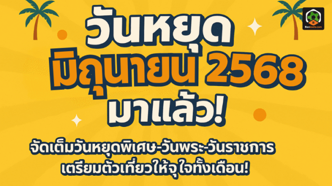 วันหยุดมิถุนายน 2568 มาแล้ว! จัดเต็มวันหยุดพิเศษ-วันพระ-วันราชการ เตรียมตัวเที่ยวให้จุใจทั้งเดือน!