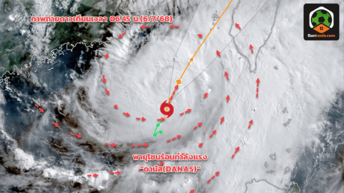เมื่อเวลา 04.00 น. ของวันนี้ (6 ก.ค. 2568) ศูนย์กลางของพายุ “ดานัส” อยู่ที่ละติจูด 21.3 องศาเหนือ ลองจิจูด 118.0 องศาตะวันออก ความเร็วลมสูงสุดใกล้ศูนย์กลาง 90 กม./ชม. เคลื่อนตัวไปทางทิศตะวันออกเฉียงเหนือค่อนทางเหนือเล็กน้อยอย่างเชื่องช้า คาดว่าจะเข้าใกล้เกาะไต้หวันระหว่างวันที่ 6–7 กรกฎาคม 2568 และไม่เคลื่อนเข้าสู่ไทยแต่อย่างใด ทว่าแรงลมและอิทธิพลจากพายุ ทำให้มรสุมตะวันตกเฉียงใต้ในบ้านเรามีกำลังแรงขึ้นอย่างมาก
