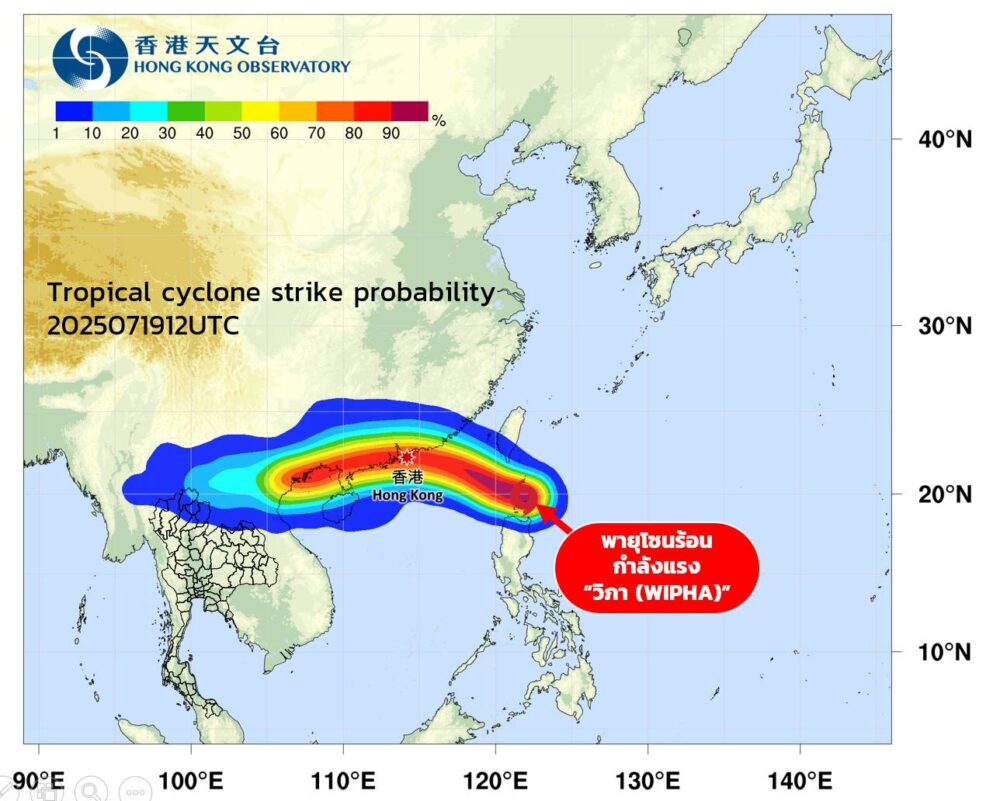 ขณะที่ไทยรับฝน ฮ่องกงเจอลมแรงเต็มๆ เมื่อสำนักข่าวต่างประเทศรายงานว่า วิภาทวีกำลังขึ้นเป็นไต้ฝุ่น ก่อนเที่ยงคืนของวันอาทิตย์ ทำให้ หอสังเกตการณ์ฮ่องกง ออกสัญญาณพายุระดับ 10 เตือนภัยสูงสุด (ความเร็วลมเฉลี่ยเกิน 118 กม./ชม.) ส่งผลให้ต้องยกเลิกเที่ยวบินกว่า 500 เที่ยว ขนส่งสาธารณะต้องระงับบริการหลายเส้นทาง ผู้โดยสารตกค้างรอเดินทางกว่าแสนคนในสนามบิน