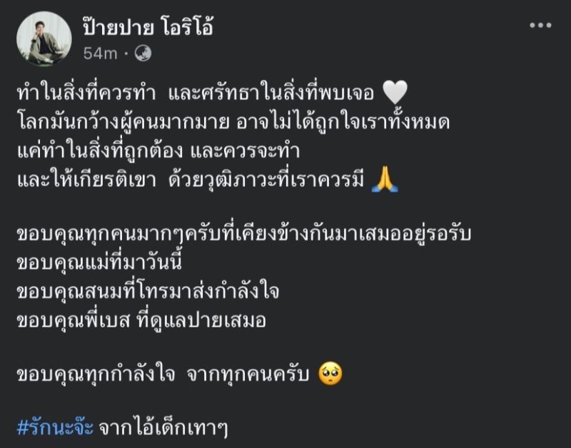 แม้จะตกอยู่ในกระแสดราม่า แต่ป๊ายปายก็ออกมาโพสต์ด้วยน้ำเสียงนิ่งและให้กำลังใจตัวเองว่า