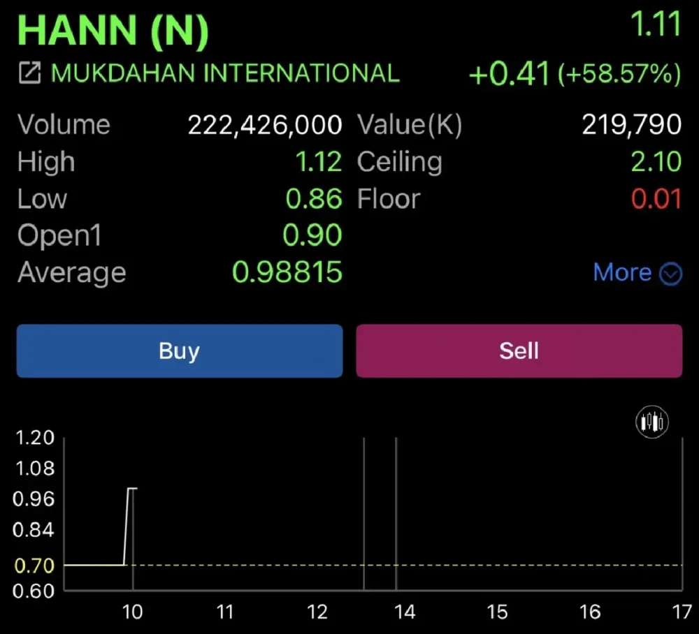 ก่อน HANN ปีนี้มีหุ้น IPO เข้าจดทะเบียนใน mai อีก 5 ตัว ได้แก่ PIS, MOTHER, LTMH, BKA, NUT ซึ่งมีทั้งที่ราคาปรับขึ้นและปรับลงหลังเข้าตลาด แต่ HANN เป็นรายแรกที่สามารถทำซิลลิ่งได้ในวันแรก ถือเป็นปรากฏการณ์ที่นักลงทุนจับตา
