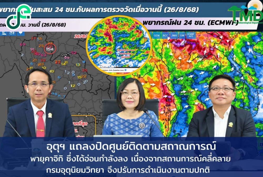 แม้พายุ “คาจิกิ” จะอ่อนกำลังลงแล้ว แต่ยังทำให้ฝนตกหนักในหลายพื้นที่ ล่าสุดกรมอุตุฯ ย้ำว่า 26 จังหวัดยังต้องเฝ้าระวังต่อเนื่อง โดยเฉพาะทางภาคเหนือและอีสานที่มีฝนตกหนักสะสมติดต่อกันหลายวัน