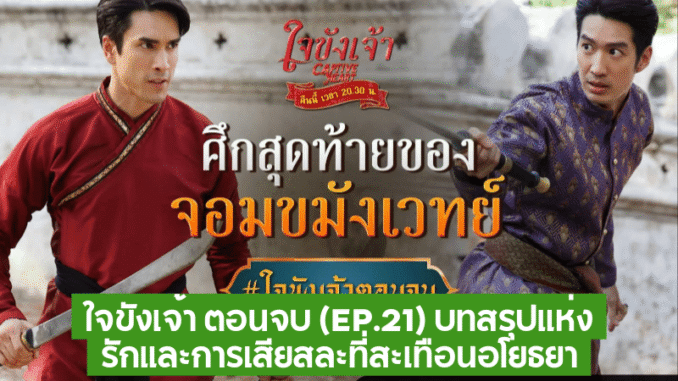 ใน ตอนจบ EP.21 อโยธ่ากำลังลุกเป็นไฟเมื่อ หลวงบวรทัต (เดี่ยว สุริยนต์) และ แถนสีนิล (อาสุเชาว์) ก่อกบฏหมายยึดแผ่นดิน ทั้งยังวางแผนลอบสังหารองค์รัชทายาทเพื่อสถาปนาอำนาจใหม่ พันแสงในฐานะผู้ถูกสาป แม้รู้ดีว่าการใช้ดาบและพลังอาคมครั้งนี้อาจแลกด้วยชีวิต แต่ก็เลือกจะยืนหยัดเคียงข้างบ้านเมือง ชวาลาผู้สูญเสียความทรงจำจากเหตุเพลิงไหม้หอสมุดหลวง แม้ความหลังจะเลือนหาย แต่จิตวิญญาณรักชาติยังผลักดันให้เธอจับดาบออกสู้เคียงข้างพันแสง