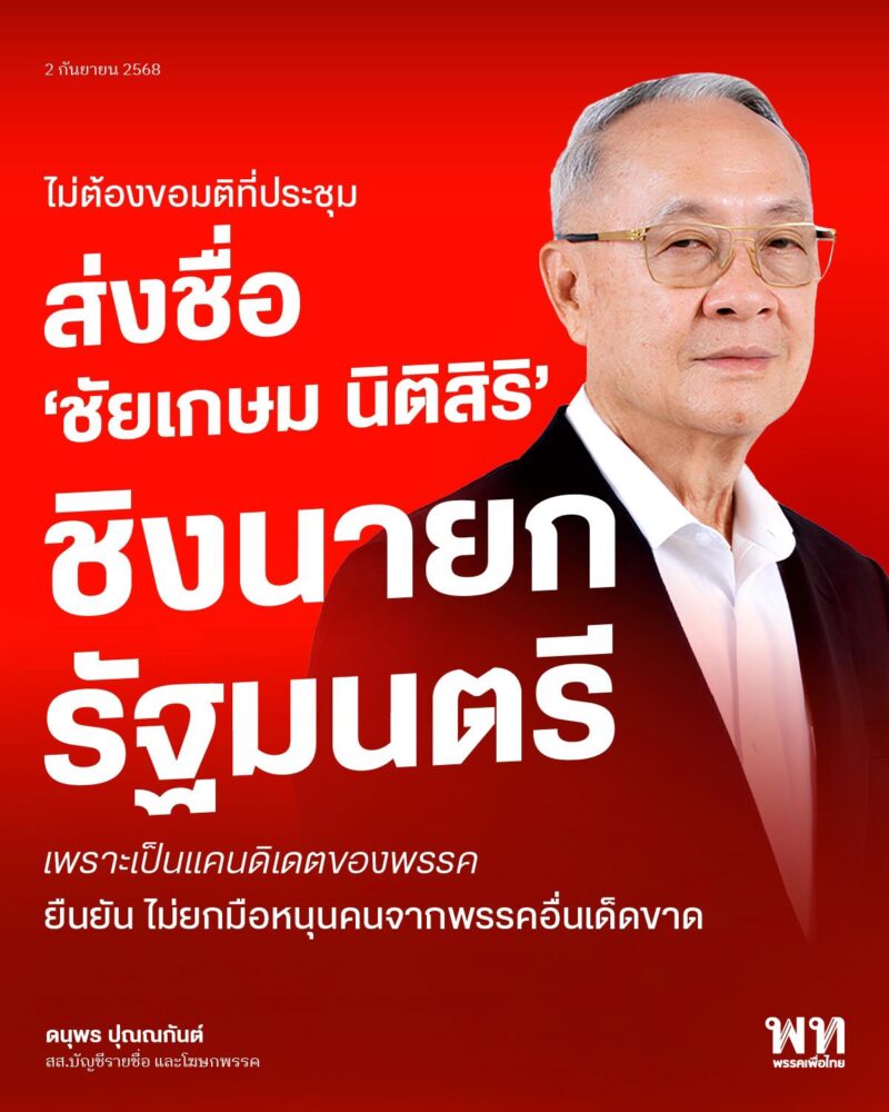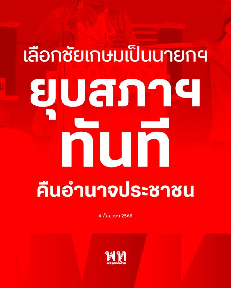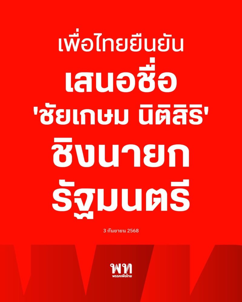 - ฝั่งเพื่อไทย: ยืนยันว่า หาก “ชัยเกษม” ได้เสียง จะ ยุบสภาทันทีหลังแถลงนโยบาย