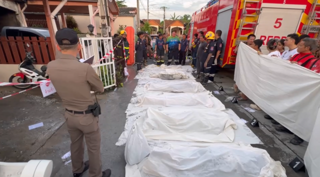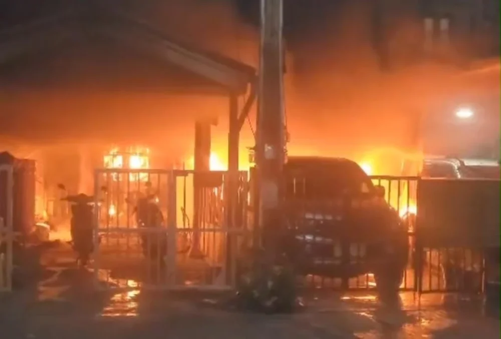 ประมาณ 02.07 น. เพื่อนบ้านได้ยินเสียงร้องขอความช่วยเหลือแล้วเห็นเปลวไฟพุ่งจากตัวบ้านต้นเพลิง