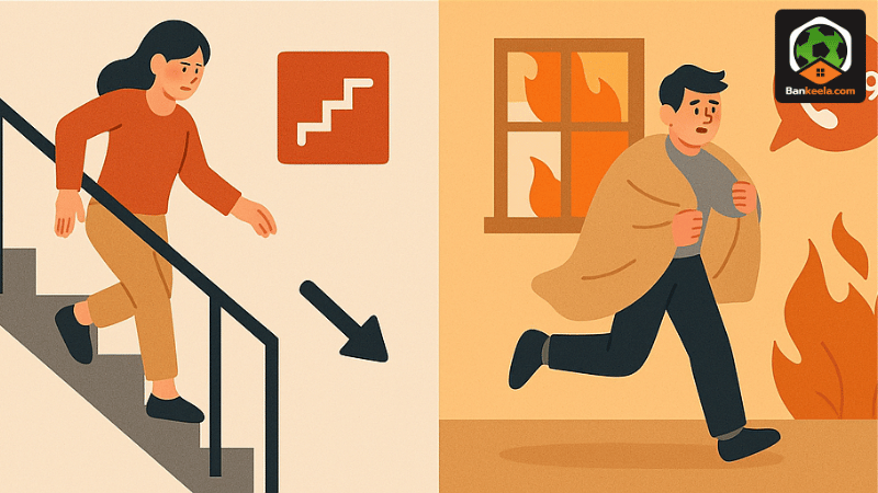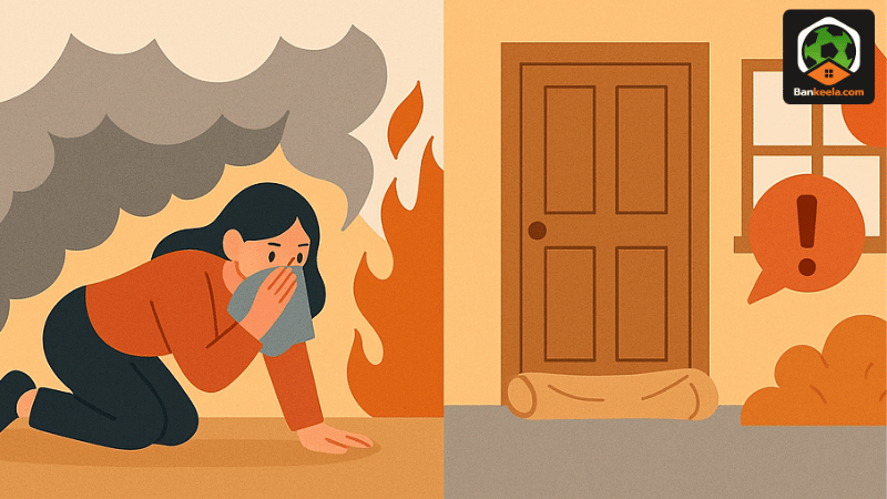 - ถ้าไฟล้อมห้องให้ปิดประตูหลัก อุดช่องว่างด้วยผ้าเปียก เปิดหน้าต่างเรียกขอความช่วยเหลือ ไม่กระโดดจากที่สูงหากไม่มีอุปกรณ์