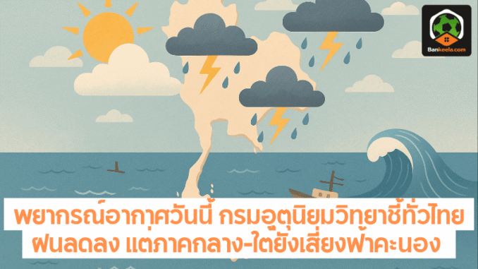 พยากรณ์อากาศวันนี้ กรมอุตุนิยมวิทยาชี้ทั่วไทยฝนลดลง แต่ภาคกลาง-ใต้ยังเสี่ยงฟ้าคะนอง ชาวเรือเฝ้าระวังคลื่นสูง!