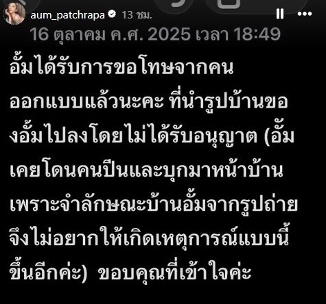 “อั้ม พัชราภา” เดือด! ฟาดเพจเอาภาพบ้านไปเปรียบเทียบ สั่งลบ–ขอโทษทันที