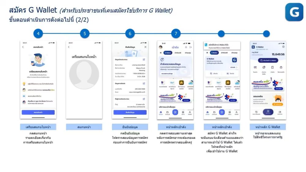- รับผลลงทะเบียนผ่าน แจ้งเตือนในแอป เติมเงินเข้า G Wallet แล้วเริ่มใช้สิทธิได้ตามกำหนด