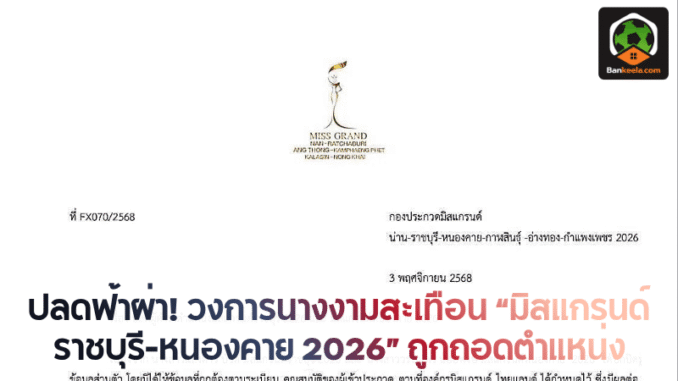ปลดฟ้าผ่า! วงการนางงามสะเทือน “มิสแกรนด์ราชบุรี–หนองคาย 2026” ถูกถอดตำแหน่งพร้อมกัน เหตุปกปิดข้อมูลส่วนตัว