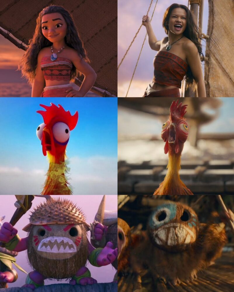 - ฉาก โมอาน่าเด็กเจอกับทะเลครั้งแรก เมื่อน้ำทะเลแหวกออกและส่งเปลือกหอยให้เธอ เป็นช็อตที่แฟนแอนิเมชันจำได้ดี และถูกนำมารีสร้างใหม่แบบไลฟ์แอ็กชัน