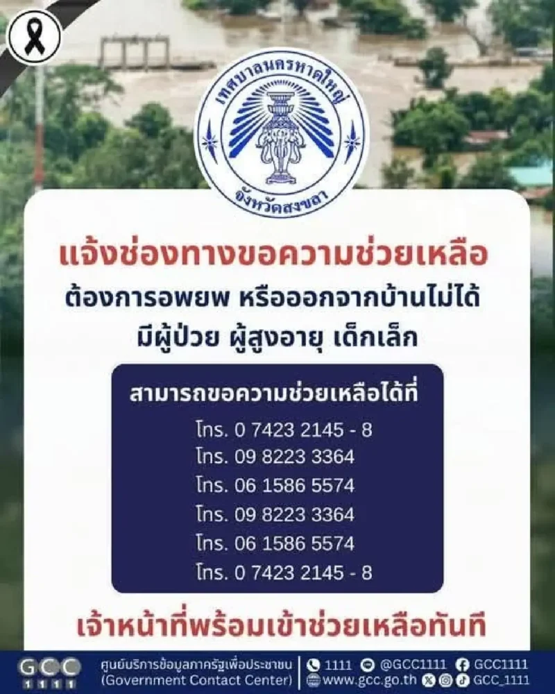 ช่องทางขอความช่วยเหลือ 24 ชม. หาดใหญ่เปิดศูนย์บัญชาการหลัก – อพยพผู้ประสบภัย