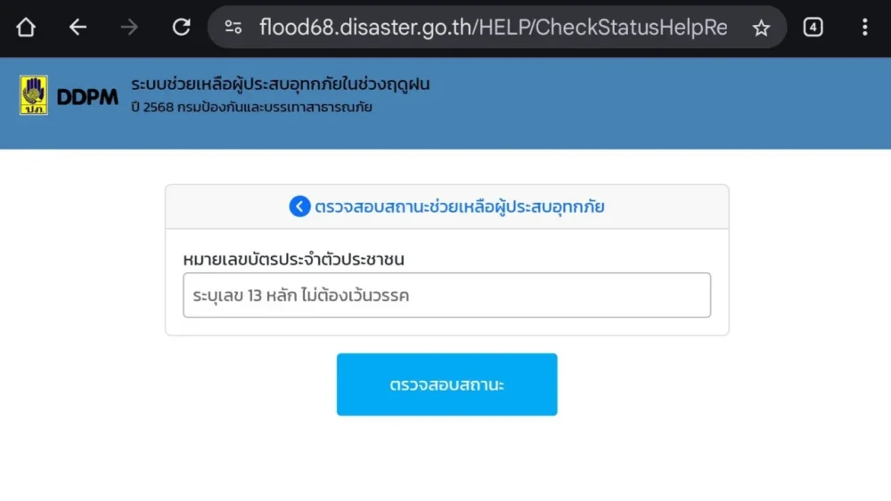 หลังลงทะเบียนแล้ว สิ่งที่ทุกคนอยากรู้ที่สุดคือ “เงินเข้าหรือยัง?” ระบบของ ปภ. เปิดให้ ตรวจสอบสถานะ ผ่านหน้าเว็บได้ตลอดเวลา โดยมีขั้นตอนดังนี้