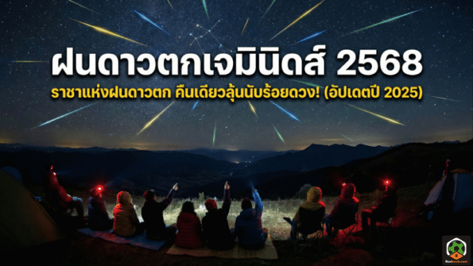 ปี 2025 ฝนดาวตกเจมินิดส์ “ออกอากาศ” ยาวตั้งแต่ 4–20 ธันวาคม และคืนพีกอยู่แถวกลางเดือนธันวาคม สำหรับประเทศไทย NARIT แนะนำคืนวันที่ 14 ต่อเนื่องรุ่งเช้า 15 ธันวาคม 2568 โดยช่วงที่เริ่มเห็นได้ชัดและเหมาะกับการเฝ้าดูคือประมาณ 20:00–02:30 น. (หลังจากนั้นเริ่มมีแสงจันทร์รบกวนมากขึ้น)ส่วน “คืนวันที่ 13–14” ก็มีลุ้นชมได้เช่นกัน แต่เงื่อนไขแสงจันทร์/ท้องฟ้าอาจรบกวนมากกว่าในบางช่วงเวลา