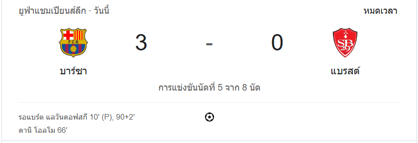บาร์เซโลน่า พิสูจน์ให้เห็นถึงความแข็งแกร่งของทีมและการทำเกมรุกที่เฉียบคม โดยเฉพาะ โรเบิร์ต เลวานดอฟสกี้ ที่โดดเด่นด้วยการทำสองประตูในเกมนี้ ขณะที่ แบรสต์ แม้จะพยายามสู้เต็มที่ แต่ก็ไม่สามารถต้านทานเกมรุกที่ดุดันของเจ้าถิ่นได้