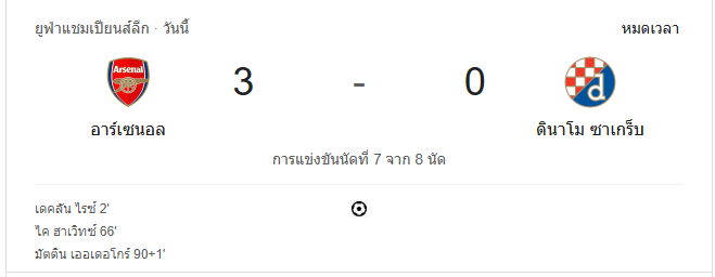 ผลบอลสด ยูฟ่าแชมเปียนส์ลีก 2024 ระหว่าง ทีม อาร์เซนอล vs ดินาโม ซาเกร็บ วันนี้ 23/1/68 ดูบอลย้อนหลัง คลิปไฮไลท์ ดูบอลยูฟ่าแชมเปียนส์ลีก 2024