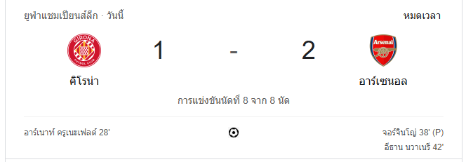 ผลบอลสด ยูฟ่าแชมเปียนส์ลีก 2024 ระหว่าง ทีม คิโรน่า vs อาร์เซนอล วันนี้ 30/1/68 ดูบอลย้อนหลัง คลิปไฮไลท์ ดูบอลยูฟ่าแชมเปียนส์ลีก 2024