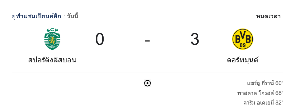 เกมนี้แสดงให้เห็นถึงคุณภาพของ “โบรุสเซีย ดอร์ทมุนด์” ที่เหนือกว่าสปอร์ติ้ง ลิสบอน ทั้งในเรื่องของการครองบอลที่ทำได้ 55% และการจบสกอร์ที่เฉียบคมกว่า