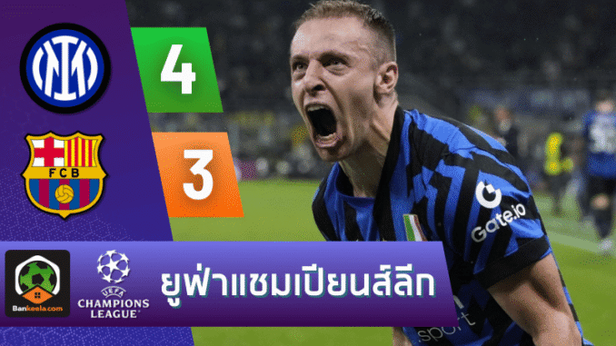 บ้านผลบอล สรุปหลังเกม อินเตอร์ มิลาน เฉือนบาร์เซโลน่าสุดระทึก 4-3 ต่อเวลาพิเศษ ลิ่วชิง UCL ด้วยสกอร์รวม 7-6!