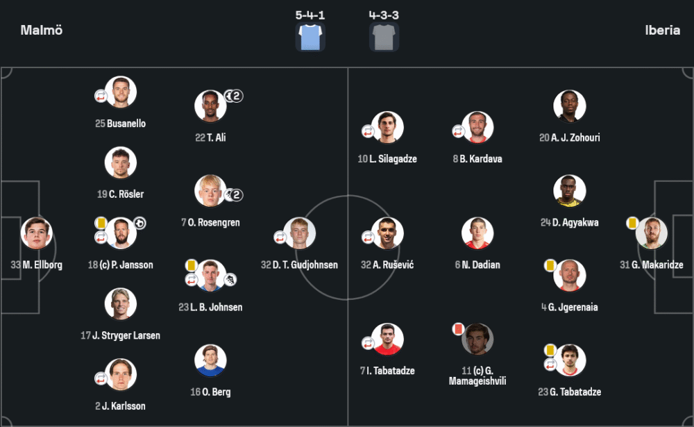 🔄 การเปลี่ยนตัวหลักเริ่มตั้งแต่นาที 46 ของมัลโม่ และซาเบอร์ทาโลทยอยเปลี่ยนตั้งแต่นาที 61