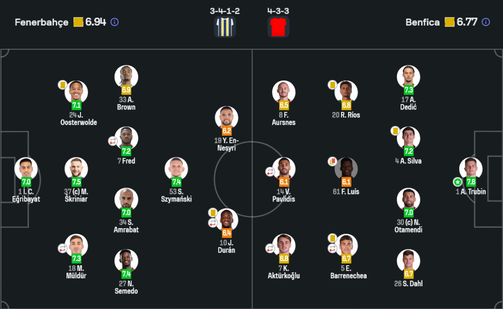 อานาโตลี ทรูบิน – ผู้รักษาประตูเบนฟิก้า โชว์ฟอร์มสุดเหนียว เซฟลูกสำคัญหลายครั้ง โดยเฉพาะในช่วงท้ายเกมที่เฟเนร์บาห์เช่บุกกระหน่ำ ช่วยทีมเก็บคลีนชีตในเกมเยือนที่ยากลำบาก