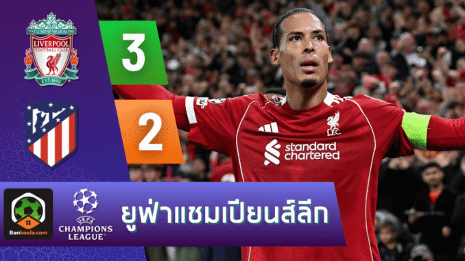 ค่ำคืนแห่งศึก ยูฟ่าแชมเปี้ยนส์ลีก ที่แอนฟิลด์เต็มไปด้วยความมันส์ เมื่อ ลิเวอร์พูล เปิดบ้านเชือด แอตเลติโก้ มาดริด 3-2 แบบสุดระทึก เกมนี้แฟนหงส์ได้เห็นทั้งความเฉียบคมของเกมรุก และความเหนียวแน่นที่ต้องต่อสู้กับความดุดันของทีมตราหมี บ้านกีฬา ขอสรุปทุกประเด็นพร้อมอัปเดต ผลบอลสด แบบเข้มข้น