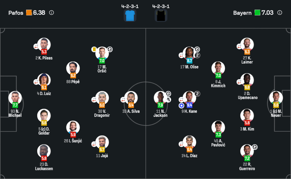 ขณะที่ ปาฟอส พยายามตั้งรับในระบบ 4-2-3-1 แต่ขาดความแน่นอนและมีช่องว่างในแดนหลังให้บาเยิร์นเจาะได้ง่าย การเคลื่อนบอลของเจ้าถิ่นยังช้าและเสียบอลกลางทางบ่อยครั้ง เกมนี้ถือเป็นตัวอย่างของการ วิเคราะห์บอล ว่าความแตกต่างในคลาสของทีมส่งผลโดยตรงต่อรูปเกมทั้งรุกและรับ