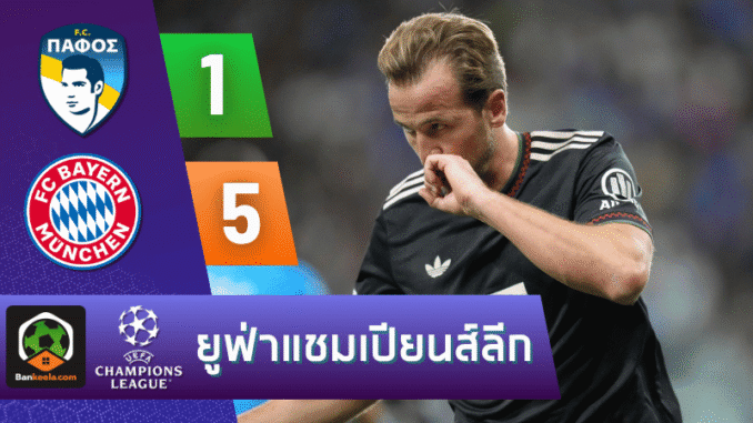การแข่งขันฟุตบอล ยูฟ่า แชมเปียนส์ลีก รอบแบ่งกลุ่ม นัดที่ 2 ที่สนามของ เออีพี ปาฟอส ประเทศไซปรัส จบลงด้วยชัยชนะสุดยิ่งใหญ่ของ บาเยิร์น มิวนิค ที่โชว์ฟอร์มสมราคายักษ์ยุโรป บุกถล่มเจ้าถิ่นไปแบบไม่ไว้หน้า 5-1 เกมนี้ แฮร์รี่ เคน ยิงสองประตู ขึ้นแท่น Player of the Match พร้อมพาทีมรั้งจ่าฝูงกลุ่มด้วยผลงาน 2 นัด 6 คะแนนเต็ม โดย บ้านกีฬา รายงาน ผลบอลสด อย่างละเอียดหลังจบเกมนี้