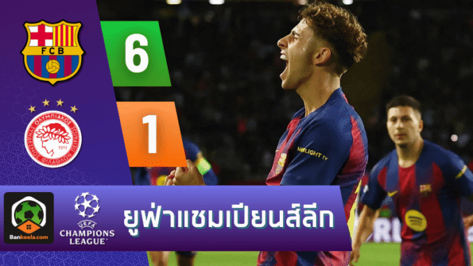 บ้านกีฬาพาเกาะติด ยูฟ่าแชมเปียนส์ลีก ค่ำคืนที่คัมป์นูเดือดเป็นไฟ บาร์เซโลน่าเปิดเครื่องแบบไม่ไว้หน้า ถล่ม โอลิมเปียกอส ไพรีอัส 6-1 เกมนี้แฟนๆ ไล่เช็ก ผลบอลสด กันมันส์มือ ตั้งแต่นาทีแรกจนสิ้นเสียงนกหวีด เพราะบาร์ซ่ากระหน่ำเกมรุกโหดจริง ยิงตรงกรอบถึงเก้าครั้ง แถมทีมเยือนโดนใบแดงยิ่งพังทลายรูปเกม