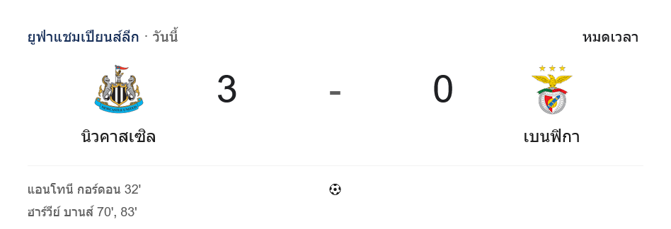 จาก : ผลบอลสด ยูฟ่าแชมเปียนส์ลีก ระหว่าง นิวคาสเซิ่ล ยูไนเต็ด 3-0 เบนฟิก้า วันนี้ 22/10/68 – บ้านกีฬา