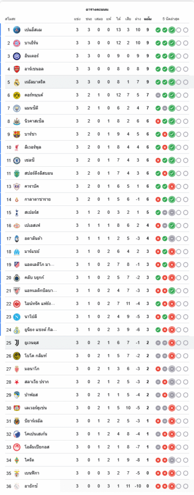 ชัยชนะของเรอัล มาดริดในเกมนี้ ทำให้พวกเขามีเพิ่มเป็น 9 คะแนนจาก 3 นัด รั้งอันดับ 5 ของกลุ่มรวมตารางใหญ่ของยูฟ่า ชปล. ส่วนยูเวนตุสยังคงรั้งอันดับ 25 แบบน่าผิดหวัง ต้องเร่งเก็บแต้มในเกมต่อไปหากยังหวังลุ้นเข้ารอบ