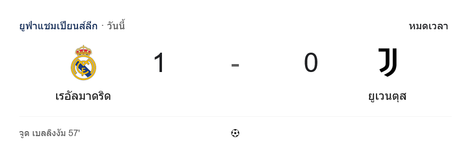 จาก : ผลบอลสด ยูฟ่าแชมเปียนส์ลีก ระหว่าง เรอัล มาดริด 1-0 ยูเวนตุส วันนี้ 23/10/68 – บ้านกีฬา