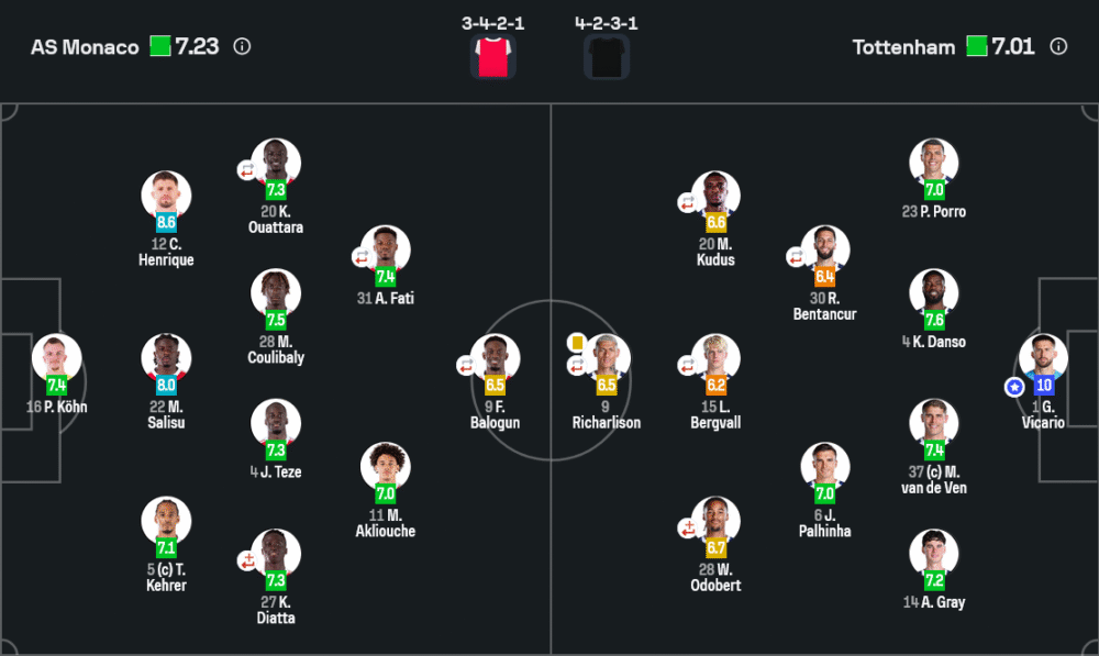 นักเตะโดดเด่น: Henrique (โมนาโก), Coulibaly (โมนาโก), Vicario (สเปอร์ส)