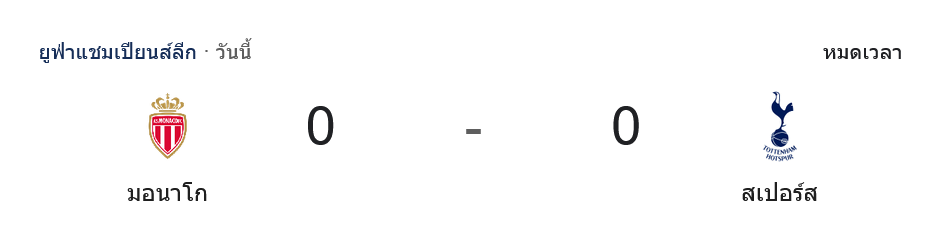 ศึก ยูฟ่าแชมเปียนส์ลีก ค่ำคืนสุดเข้มข้นระหว่าง อาแอส โมนาโก เปิดบ้านรับการมาเยือนของ ท็อตแน่ม ฮ็อทสเปอร์ จบลงด้วยผลเสมอ 0-0 แต่เกมนี้ไม่ได้จืดอย่างที่สกอร์บอก เพราะเจ้าถิ่นเปิดเกมรุกใส่อย่างต่อเนื่อง ขณะที่ทีมเยือนฝากความหวังไว้กับนายทวารฟอร์มเทพ กุยเยลโม่ วิคาริโอ ที่เซฟเป็นพัลวันจนกลายเป็นฮีโร่ของทีมไปแบบไม่ต้องสงสัย ถือเป็นอีกหนึ่งแมตช์ที่แฟนบอลตามติด ผลบอลสด กันอย่างลุ้นระทึก