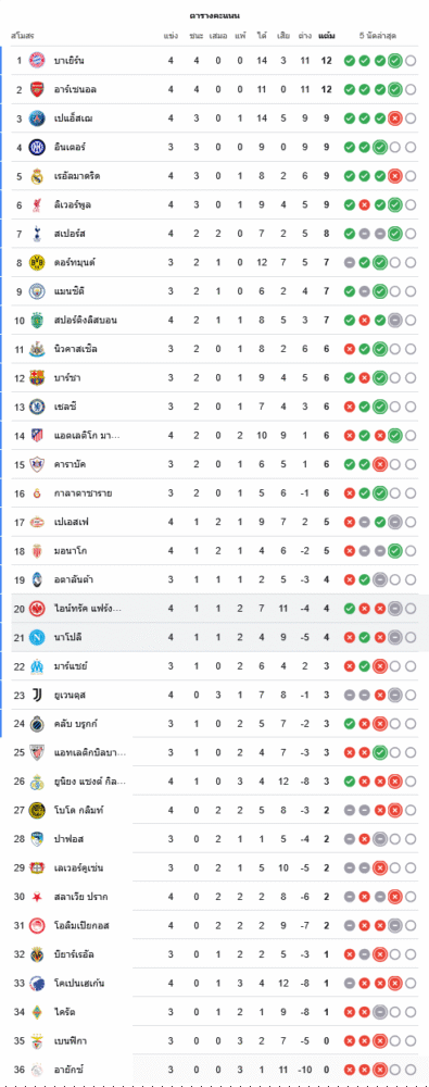 📌 สถานการณ์ในตารางคะแนนยูฟ่าแชมเปียนส์ลีก