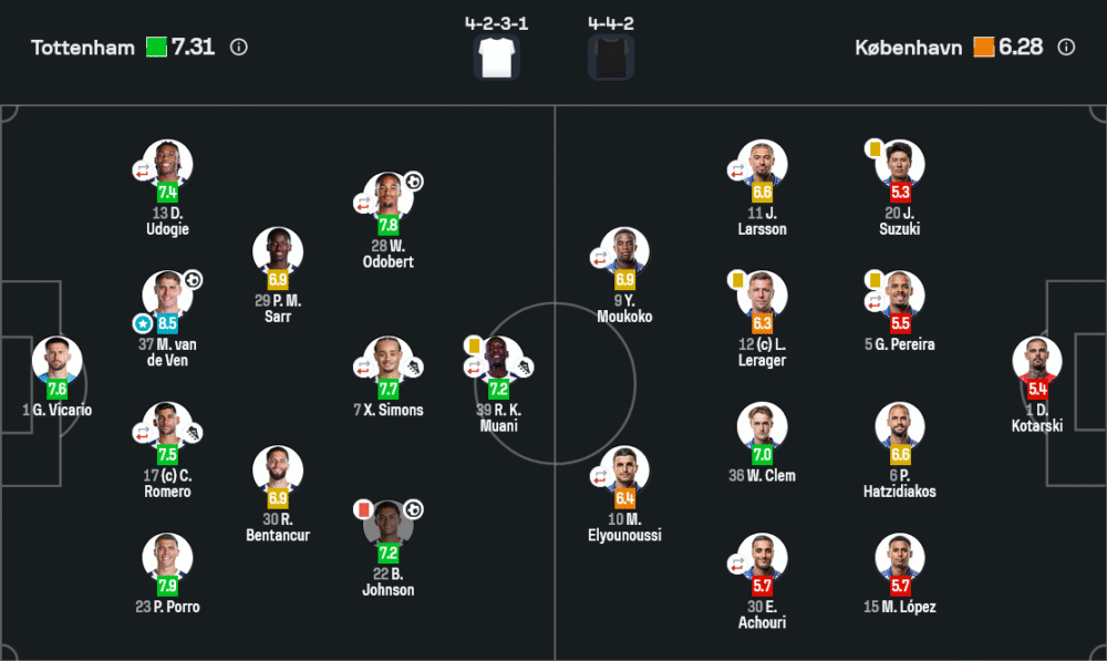 🐔 ท็อตแน่ม ฮ็อทสเปอร์ (4-2-3-1) – เรตติ้ง Sofascore