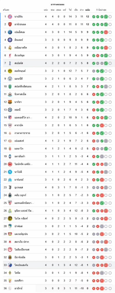 📌 สถานการณ์ในตารางคะแนนยูฟ่าแชมเปียนส์ลีก