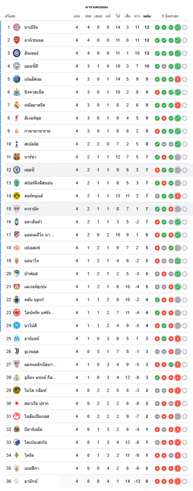📌 สถานการณ์ในตารางคะแนนยูฟ่าแชมเปียนส์ลีก