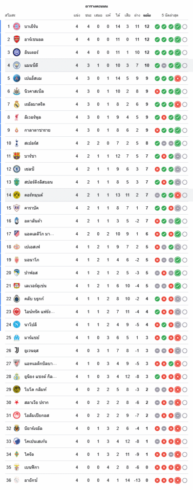 🧮 สถานการณ์ในตารางคะแนนยูฟ่าแชมเปียนส์ลีก