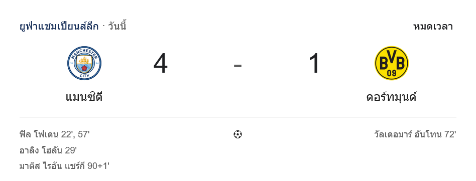 • 🔚 จบเกม แมนเชสเตอร์ ซิตี้ 4-1 โบรุสเซีย ดอร์ทมุนด์