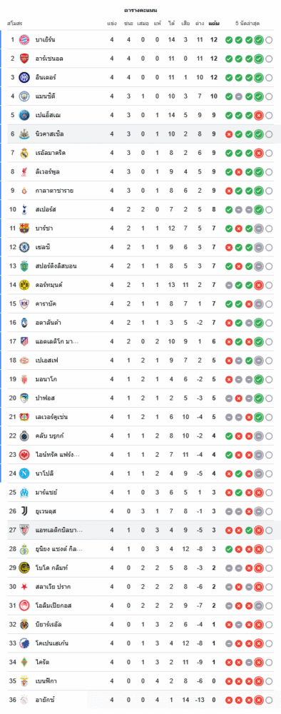 📌 สถานการณ์ในตารางคะแนนยูฟ่าแชมเปียนส์ลีก