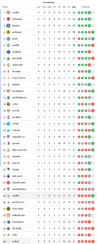 📌 สถานการณ์ในตารางคะแนนยูฟ่าแชมเปียนส์ลีก