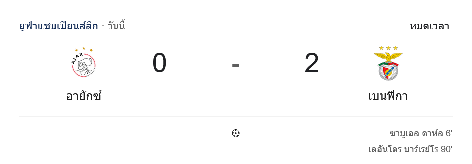จาก : ผลบอลสด ยูฟ่าแชมเปียนส์ลีก ระหว่าง อาแจกซ์ อัมสเตอร์ดัม 0-2 เบนฟิก้า วันนี้ 26/11/68 – บ้านกีฬา