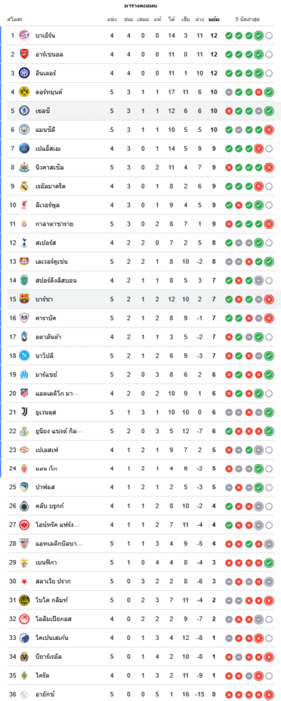 ฝั่ง บาร์เซโลน่า สถานการณ์เริ่มน่าห่วง หลังผ่าน 5 นัด ชนะ 2 เสมอ 1 แพ้ 2 ยิงได้ 12 เสีย 10 ประตูได้เสีย +2 มีเพียง 7 คะแนน รั้งอันดับ 15 ของตาราง ถ้ายังหลุดฟอร์มในเกมใหญ่แบบนี้อีก การลุ้นพื้นที่น็อกเอาต์อาจกลายเป็นเรื่องเหนื่อยหอบสำหรับชาบีกับลูกทีม เพราะพื้นที่หัวตารางเริ่มถูกกลุ่มทีมฟอร์มแรงจับจองกันแน่น