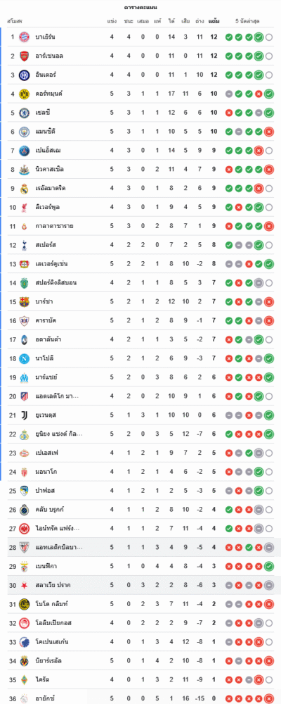📌 สถานการณ์ในตารางคะแนนยูฟ่าแชมเปียนส์ลีก