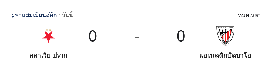 เกมยูฟ่าแชมเปียนส์ลีกที่กรุงปรากระหว่าง สลาเวีย ปราก เปิดบ้านรับ แอธเลติก บิลเบา กลายเป็น 90 นาทีที่ดุเดือดแต่ไร้ประตู ทั้งสองทีมใส่เกมเพรสซิ่งสูง วิ่งสู้ฟัดชนกันทุกจังหวะ จนคนตามเช็ก ผลบอลสด แทบไม่กะพริบตา แม้สกอร์จะจบที่ 0-0 แต่ระดับความเข้มข้นถือว่าไม่แพ้คู่ไหนในค่ำคืนนี้เลย