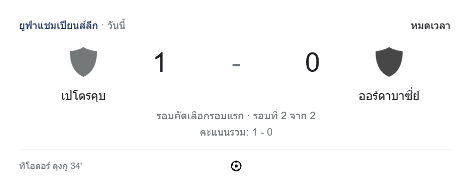 เมื่อวันที่ผ่านมา ซีเอส เปโตรคุบ เอาชนะ ออร์ดาบาซี่ย์ ด้วยสกอร์ 1-0 ในรอบคัดเลือกยูฟ่าแชมเปียนส์ลีก 2024 ทำให้ผลคะแนนรวมทั้งสองนัดเป็น 1-0 เปโตรคุบผ่านเข้าสู่รอบถัดไปได้สำเร็จ