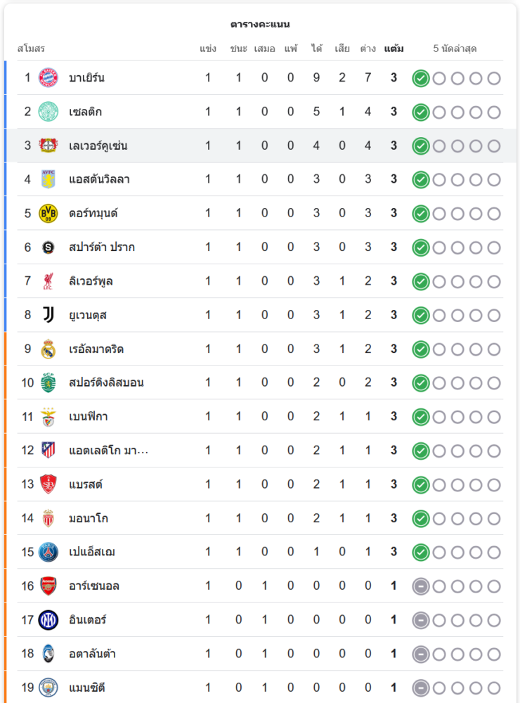 หลังจากเก็บชัยชนะได้อย่างยอดเยี่ยมในเกมแรกของรอบแบ่งกลุ่ม เลเวอร์คูเซินขึ้นไปอยู่ในอันดับที่ 3 ของตารางคะแนน ด้วย 3 แต้มและผลต่างประตูได้เสีย +4 ขณะที่เฟเยนูร์ดหล่นไปอยู่ในอันดับที่ 35 จากการแพ้ในเกมนี้ ทำให้พวกเขายังไม่มีคะแนนและต้องเร่งฟอร์มในเกมถัดไปเพื่อไม่ให้ตกจากกลุ่ม